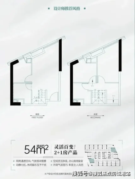 54㎡与 67㎡两房户型:支持明火烹饪,居住便利性贴近住宅,非常适合小家庭使用。4.5 米层高让空间更加通透,不会有压抑感;两房设计可满足夫妻二人或三口之家的居住需求,同时预留了储物空间,实用性强。对于预算有限的刚需小家庭来说,这类户型既能满足居住需求,又能享受 LOFT 产品的独特魅力。