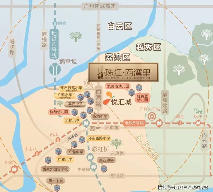 珠江·西湾里位于荔湾区核心地段这里是城市贵脉所在,汇聚了丰富的生活配套资源。步行约740米即可到达广州第二大单体购物中心悦汇城,这里集购物、餐饮、娱乐等多种功能于一体,能为业主提供一站式的精彩生活体验。同时项目还邻近广钢新城中海花湾天地等大型商业体周边更有众多超市、餐饮和娱乐设施日常生活所需应有尽有。无论是周末购物休闲还是日常消费娱乐,业主都能在短时间内满足需求,尽享城市中心的繁华与便利。