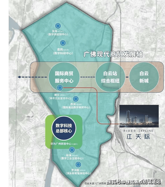 五矿招商江天际是由五矿地产、招商蛇口和广州地铁三大知名开发商携手打造的高端住宅项目,位于广州市白云区广海路槎头站上盖TOD项目。作为白云区重点发展的湾区新岸(罗冲围)片区的一部分,该项目不仅享有得天独厚的一线江景资源,还处于三线交汇的核心位置,交通便利,是广州中心五区内难得一见的性价比高的江景盘。