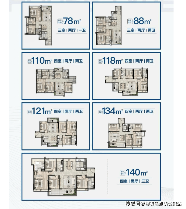 五矿招商江天际推出的户型种类繁多,从78㎡至140㎡不等,满足不同家庭的需求。所有户型均赠送入户花园,并且实用率高达90%以上。特别是部分户型设计了南向望江的大面积阳台,使得住户可以在家中享受无敌江景。此外,卧室全明飘窗设计,增加了室内的光线和通风效果。