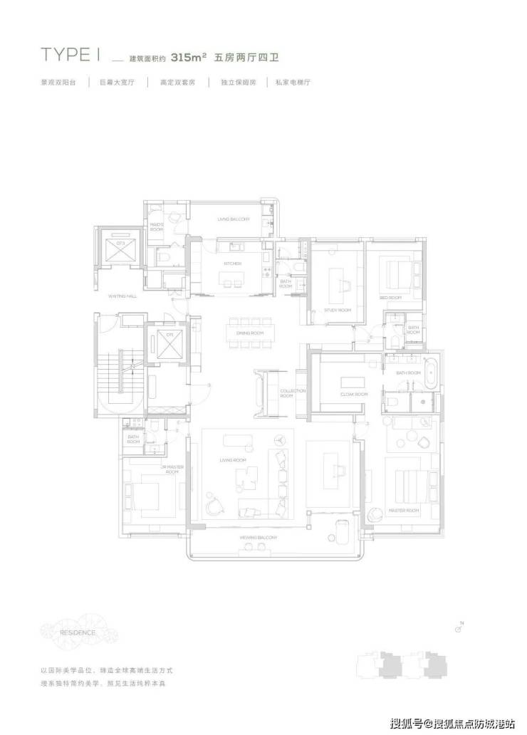 购买190㎡户型,总价约1520万,折后1474万+省5万物业费+送家电;