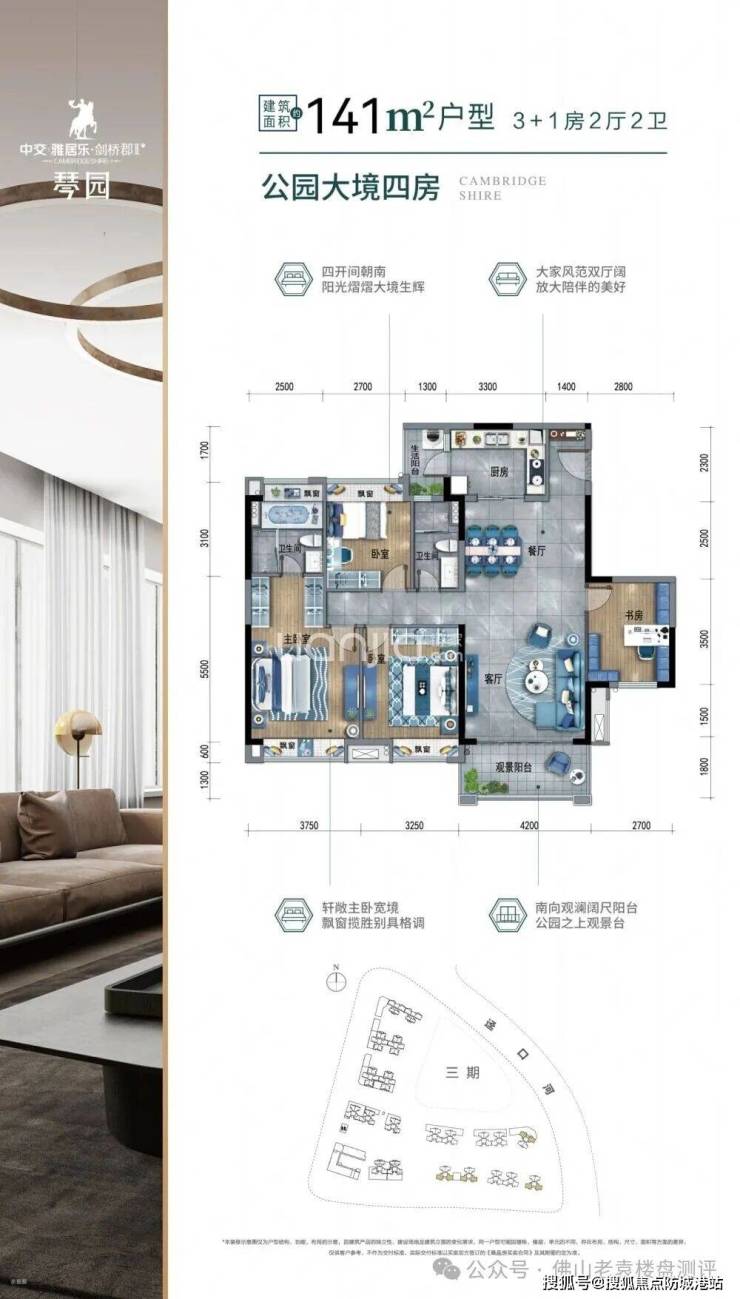 中雅江湾以“高实用率、低门槛、全周期”为核心定位,整体规划科学合理,分四期开发,打造覆盖刚需、刚改、终极改善的全产品线,每一套户型都藏着对美好生活的长远考量,适配不同阶段、不同需求的置业客群。项目总占地约11.08万㎡,总建面约41.87万㎡,整体容积率2.8,绿化率35%,共规划19栋17-32层高层住宅,总户数2236户,地下车位配比1:1.07,全人车分流设计,保障社区内部出行安全。项目由雅居乐雅生活服务股份有限公司佛山分公司提供物业服务,物业费3元/㎡·月,2023年5月完成首批交付,2025年实现全盘交付,2026年3月为全现房状态,带装修交付,支持交房即办证,无烂尾与延期风险,目前处于清盘阶段。主力户型主打高实用率,全系带装修交付,标配杜拉维特、汉斯格雅、方太等一线品牌建材,整体得房率约78%-85%,价格优势突出,在售均价11000-15000元/㎡,96㎡三房总价门槛106万起,120㎡四房总价约144万起,140㎡四房总价约168万起,部分房源加2万可赠送产权车位。户型覆盖98-141㎡,其中98㎡三房为核心刚需主力,120㎡四房为刚改爆款,140-141㎡四房为改善主力,精准适配单身、新婚家庭、多人口家庭、终极改善家庭等全周期居住需求。