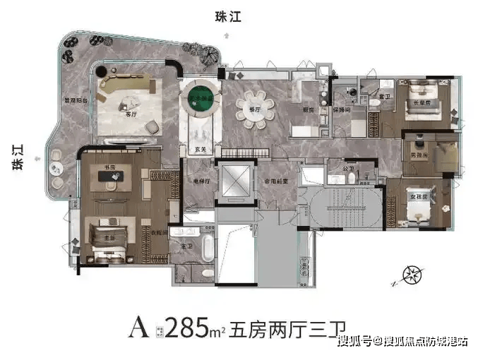 285㎡五房户型:270°环幕江景,阔绰空间演绎品质人生
