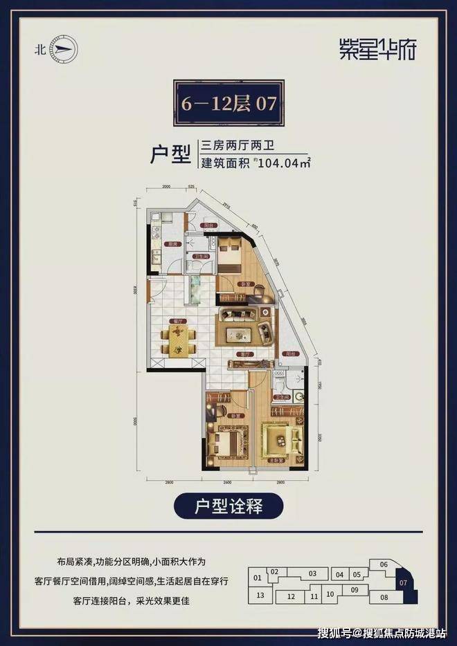 紫星华府住宅面积约 70 - 104㎡,以两到三房为主,合计 154 户。这些户型设计注重实用性和舒适性,能够满足不同家庭结构的居住需求。无论是新婚夫妇的温馨小窝,还是三口之家、三代同堂的宽敞居所,都能在这里找到合适的选择。合理的空间布局,让每一寸空间都得到充分利用,为居民提供舒适便捷的居住体验。