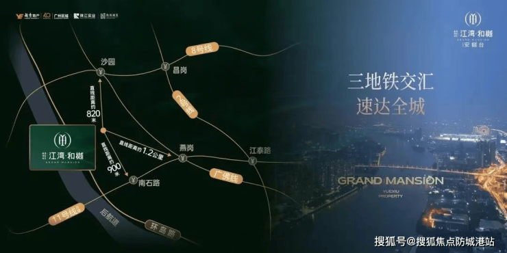 距离地铁8号线沙园站约800米,8号线作为广州“换乘之王”,可快速换乘1号线、2号线、3号线等多条线路,直达天河、越秀、荔湾等核心商圈;距离广佛线燕岗地铁站约1.2公里,无缝衔接佛山,实现广佛同城生活圈;距离在建的首条环城线11号线南石头站约900米,未来通车后可环绕广州主城,出行更加便捷。