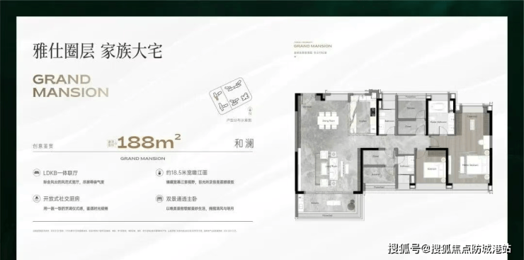 建面约188㎡江景大平层是项目的明星户型,高层房源可俯瞰一线珠江美景,目前仍有可选房源,总价约12XX万,低层房源则有笋价优惠。该户型采用大面宽设计,客厅连接景观阳台,最大化延伸观景视野,让江风与阳光自然入户;四房两厅两卫的布局,空间开阔舒适,主卧配备独立卫浴与衣帽间,保障主人隐私,同时满足多人口家庭的居住需求,无论是日常居住还是家庭聚会,都能从容应对。