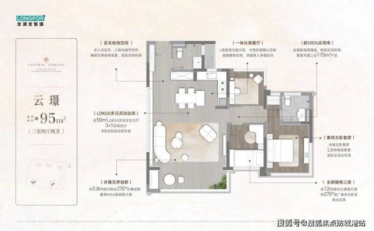 得房率:新规下最高达130%,95㎡户型实际使用面积超123㎡,性价比凸显。