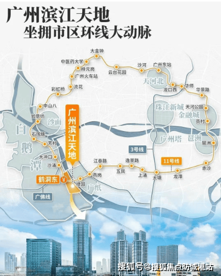 交通: 广州滨江上都地理位置优越,紧邻地铁11号线鹤洞东站,直线距离不到200米。同时,佛山地铁11号线也将在项目南侧设站,形成便捷的“TOD”模式,连接城市、车、人和轨道系统,并计划开通水上巴士服务,实现珠江两岸的快速通达。
