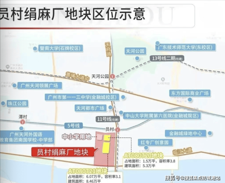 地铁 5 号线 + 11 号线员村站:步行 900 米,耗时 15 分钟;地块东北侧距地铁站 150 米,步行 3 分钟直达