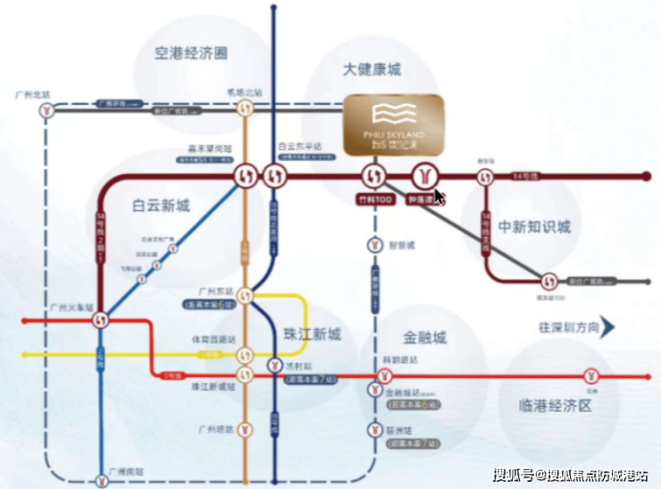 地铁14号线:项目距离地铁14号线钟落潭站约1公里,步行即可到达。通过14号线,5站可达嘉禾望岗,换乘2号线或3号线可直通白云新城及广州其他核心区域。