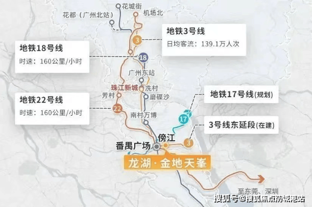 龙湖金地天峯的一大亮点就是其便捷的交通条件。项目门口即是地铁3号线东延段傍江站,通过地铁网络可以轻松到达珠江新城、琶洲等重要商务区。未来随着更多地铁线路的开通,交通便利性将进一步提升。