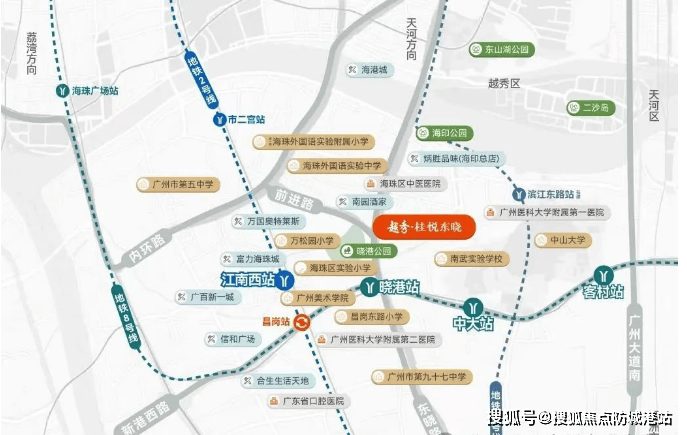 越秀桂悦东晓距离地铁8号线晓港地铁站仅0.6km,借助8号线可直达琶洲、客村等商务圈,一站到昌岗还能换乘2号线,这使得前往南站、白云新城变得十分便捷。而且在三站客村处换乘3号线,到珠江新城、体育西路也能够实现40分钟内通勤。此外,公交站点就在地块门口,线路覆盖越秀、天河、荔湾、白云等多个区域,交通网络四通八达。