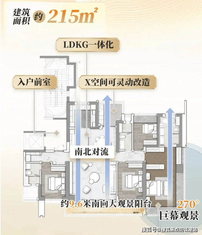 长隆万博悦府目前提供的户型面积从110平方米到300平方米不等,均为四房设计,适合刚改、改善型买家。其中,建筑面积约为170平方米的户型具有南北通透对流的特点,四开间朝南,主卧套房面积约28平方米,并配备半开放式中西厨。而更大的215平方米和300平方米户型则提供了更为奢华的生活空间,如超大入户前室、南向景观阳台以及270°观景飘窗等特色设计。