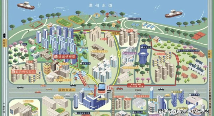 项目周边配套设施完善,实现教育、商业、医疗、休闲全覆盖。教育方面,距离华师附属北滘学校仅约1.1公里,北滘中学约1.3公里,承德小学和君兰中学均在2.7至2.8公里范围内,项目自带18班幼儿园,并规划未来新增小学及初中资源,为孩子提供完整教育保障。商业方面,周边拥有北滘商业广场、美的新都会、财富广场、万联广场等七大商业中心,购物、餐饮、娱乐一站式满足。医疗与公共服务设施完善,片区规划综合体育中心、居家养老服务中心及农贸市场,为居民提供高品质生活环境。