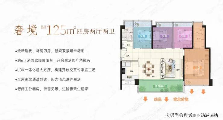 建面约125㎡四房两卫:圈层品质之选,适合追求改善生活的家庭。