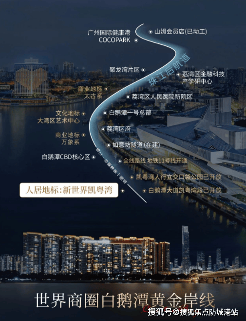 新世界凯粤湾坐落在世界级商圈白鹅潭的核心地带,拥有独一无二的地理位置优势。这里不仅是一线临江的黄金地段,还占据了白鹅潭CBD的第一圈层,三江交汇的独特地理条件赋予了这里极高的景观价值。随着“商务十四五规划”的发布,白鹅潭作为广州文化之根的地位更加稳固,“三馆合一”项目的开放更是进一步提升了该区域的文化和政治地位。