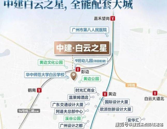 中建・白云之星卖点满满。其地处白云设计之都核心,周边超百家总部企业,高端购买力汇聚,圈层纯粹,发展潜力巨大。交通十分便捷,离地铁 2 号线黄边站不远,在建的 14 号线二期彭边站更是近在咫尺,自驾通过空港大道、广佛肇高速,能快速抵达白云新城、天河等商圈。教育资源优质,内部配建 9 班幼儿园,西侧规划九年一贯制华中师范大学白云学校,由黄边小学升级而来,预计 2026 年 9 月小学开学,教育质量有保障。商业配套丰富,自带约 2 万㎡商业街,周边大型商业中心云集。医疗资源便利,5 公里内有两所医院。生态景观优越,毗邻黄边艺术公园,未来与多个公园串联。产品设计高端,外立面与园林独具匠心,还配备双层游廊式泛会所等。智能化配置先进,全屋华为鸿蒙智能系统。再加上中建三局与白云城发联合开发,实力雄厚。不过,交房时间较晚,要到 2027 年 12 月 31 日。