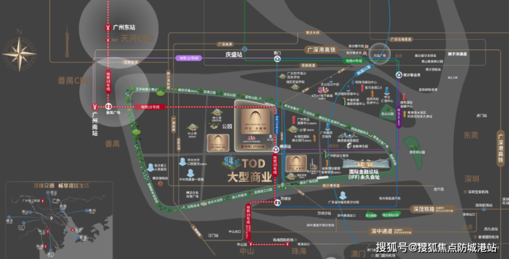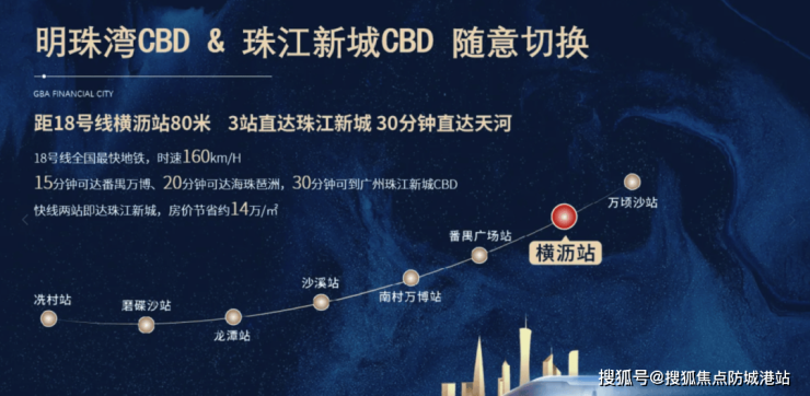 能建·湾区金融城地理位置优越,紧邻地铁18号线横沥站D出口,距离仅约80米,实现了真正的地铁上盖。通过这条“速度担当”线路,居民可以快速抵达广州各主要CBD区域,如万博CBD、琶洲、珠城CBD等。此外,规划中的15号线将进一步增强该区域的交通可达性,为居民提供更加便捷的出行选择。