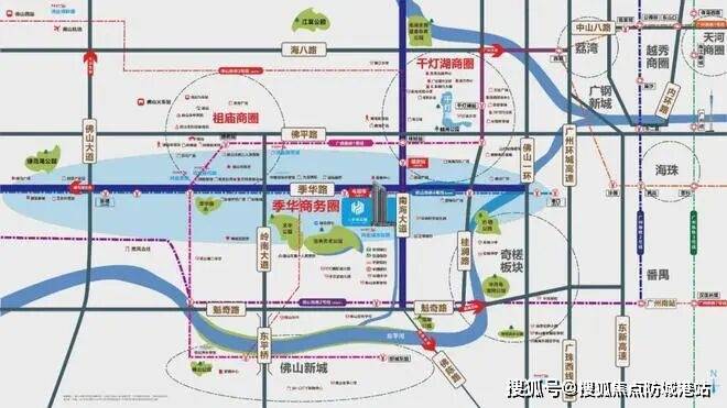 项目位于季华六路与南海大道交汇处,地处广佛同城的核心区域,拥有便捷的公共交通网络。距离佛山地铁3号线镇安站约573米,离季华六路站约588米,并且规划中的4号线预计将在附近交汇,形成“双地铁”枢纽。此外,周边还有季华路、南海大道等主要道路,方便快捷地连接佛山一环和其他重要区域。