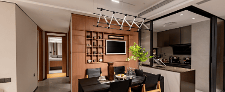 目前项目在售户型面积为83㎡ - 118㎡,近期上新的二期5座,2梯6户,33层高,主推建面约84㎡三房、102㎡四房,带装修发售,预计2027年交付。建面约84㎡三房适合一家三口刚需家庭,全屋使用率超95%,赠送面积约11.55㎡,空间奢阔明朗。U型厨房与餐客厅相连,可开可合。主卧带L型大飘窗,保证通风采光且提高屋内使用率。建面约102㎡四房拓展面积接近15㎡,使用率直逼100%,适合二胎家庭或三代同堂。入户北侧有灵动空间可按需改造,LDKG一体设计搭配约5.8米阳台,主次卧均带落地飘窗,主卧套房设计舒适度高。