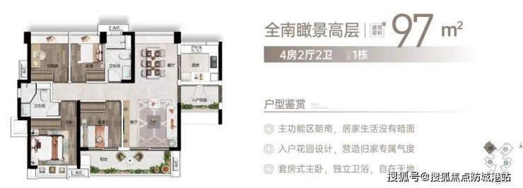 项目户型采用的是绿地2.0健康宅体系,以健康城区、健康社区、健康家居三大健康体系为基础逻辑,将建筑与健康的关系融合考虑,主要为建筑面积约75-114㎡的三至四房全南向宅邸,空间利用率高达约88%,将中小户型的空间开发提升到了新的高度。
