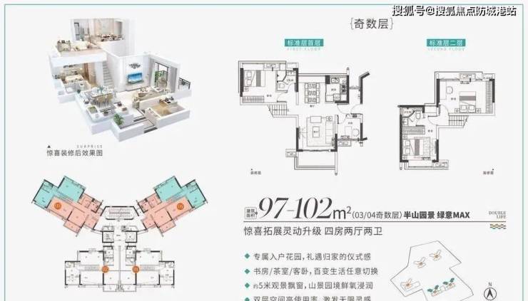 项目属于全南向户型,93-117m²复式洋房,双层景观,使用率超100%, 满足有高度、有追求的客户,还独享大型坡地园林,依山瞰湖,是增城少有的城央地铁口半山精品豪宅。