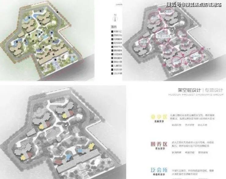 • 整体规划为 4 大功能区:商业购物区、邻里交流区、全民活动区、童玩基地区。坡地式园林社区,架空层设置童享区、 颐养区、泛会所三大主题,打造高端圈层生活形态。