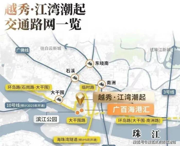 在交通方面,越秀·江湾潮起优势显著。地铁交通上,距离正在建设中的地铁10号线大干围站约650米,预计今年年底通车,届时将直达天河、越秀、海珠等区域,极大地方便了居民的日常通勤和出行。此外,周边还有2号线南洲站和广佛线石溪站,虽然距离稍远,但也为居民提供了更多的出行选择。自驾方面,门口的环岛路以及西边靠近的广州环城高速,构成了便捷的自驾网络。另外,海珠湾隧道预计今年开通,从这里开车到南站仅需约15分钟,大大缩短了与重要交通枢纽的距离。交通网络的四通八达,使居民能够轻松抵达城市的各个角落,无论是工作、购物还是休闲娱乐,都能快速便捷地实现。