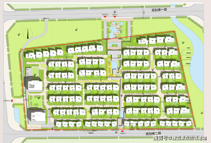项目整体规划采用高低配的布局形式,由 6 栋高层住宅与 24 栋滨水商墅组成,其中 6 栋高层住宅分布于项目北侧,呈 “倒 7 字形” 一字排开,层高分别为 21 层、31 层、43 层三种,整体呈现两边高、中间低的错落式格局,既保证了城市天际线的美观度,又最大化避免了楼栋之间的采光遮挡,让每一栋楼都能拥有更好的采光与视野。南侧 24 栋滨水商墅均为 4 层设计,分两行整齐排列,户户坐北朝南,与高层住宅形成明确的功能分区,既保证了住宅社区的静谧性,又能为社区提供完善的便民商业配套。