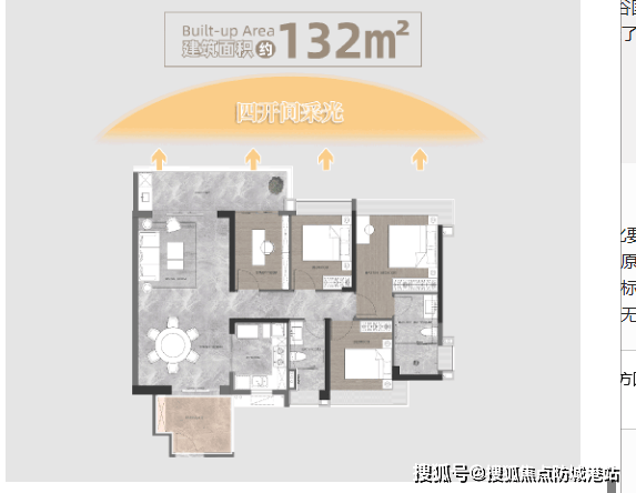 项目当前在售93-132㎡三至四房户型,涵盖刚需、改善等不同购房需求,户型设计科学合理,注重空间利用率、通风采光和景观视野,搭配独特的设计亮点,为业主提供舒适的居住体验。所有户型均采用“新中式合院”设计,同时进行了30度楼体扭转,以此实现更宽敞的楼间距,更开阔的景观视野,更好的通风和采光,避免楼栋之间的遮挡,让每一户都能享受充足的阳光和良好的视野。外立面打造上,项目采用“高山流水”的建筑线条,灰白高定立面,搭配约2.9米的巨幕玻璃,与蜿蜒的珠水和挺拔的广州塔内外呼应,营造了独特的东方美学,在阳光的照射下,建筑与地标在丰富的立面上互相辉映,既稳重协调又不失高级感,匹配塔尖人士的居住品味。具体户型详情如下: