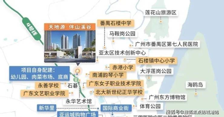 天地源·伴山溪谷位于番禺区石碁板块,周边自然环境优越,背靠尖峰山,可远眺莲花山,享有一半山景、一半城市景观。该地段生态资源丰富,是番禺乃至广州重要的山水宜居高地。项目毗邻石楼港莲大道,东临亚运板块核心区,紧邻成熟住宅及商业配套区域,居住环境舒适且便利。