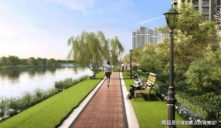 滨水公园:沿河打造约1.6公里滨水漫步公园,体育运动公园等自然公共空间,营造运动、娱乐、休闲等松弛感生活聚场。