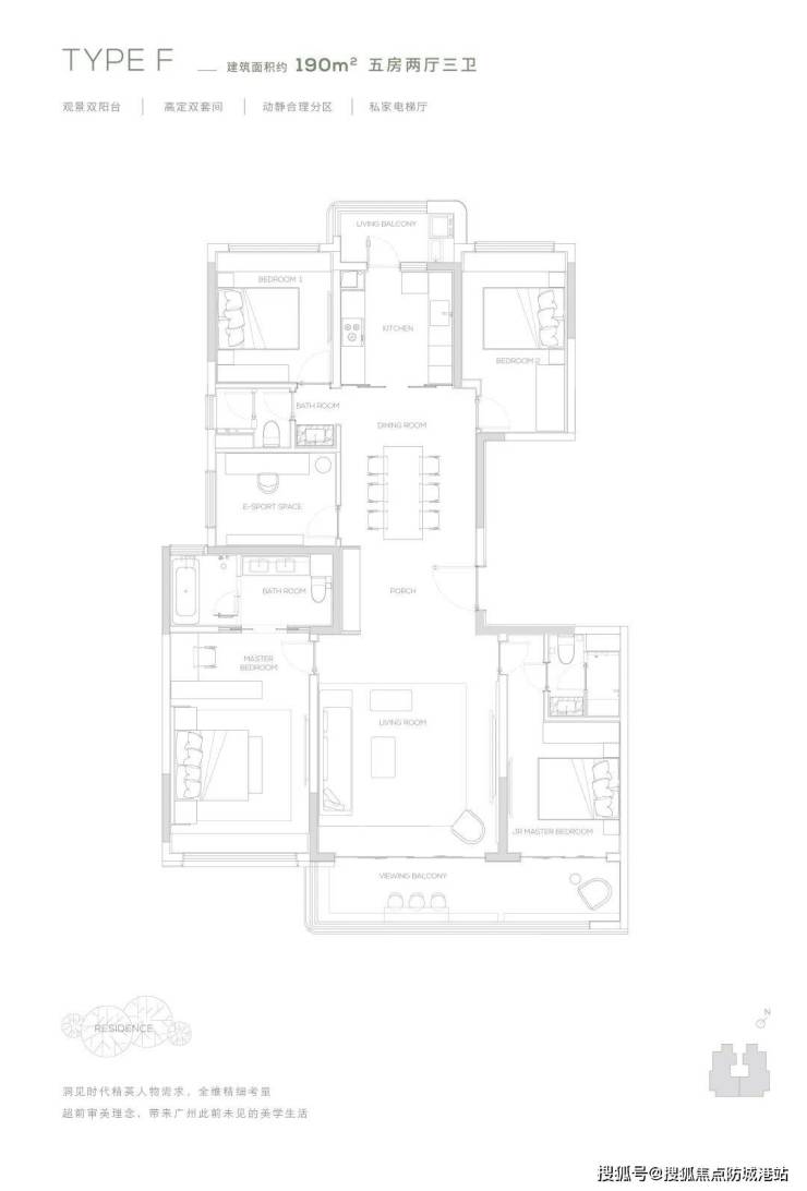 190㎡双阳台户型:观景双阳台,高定双套间,私家电梯厅,双洄游动线。