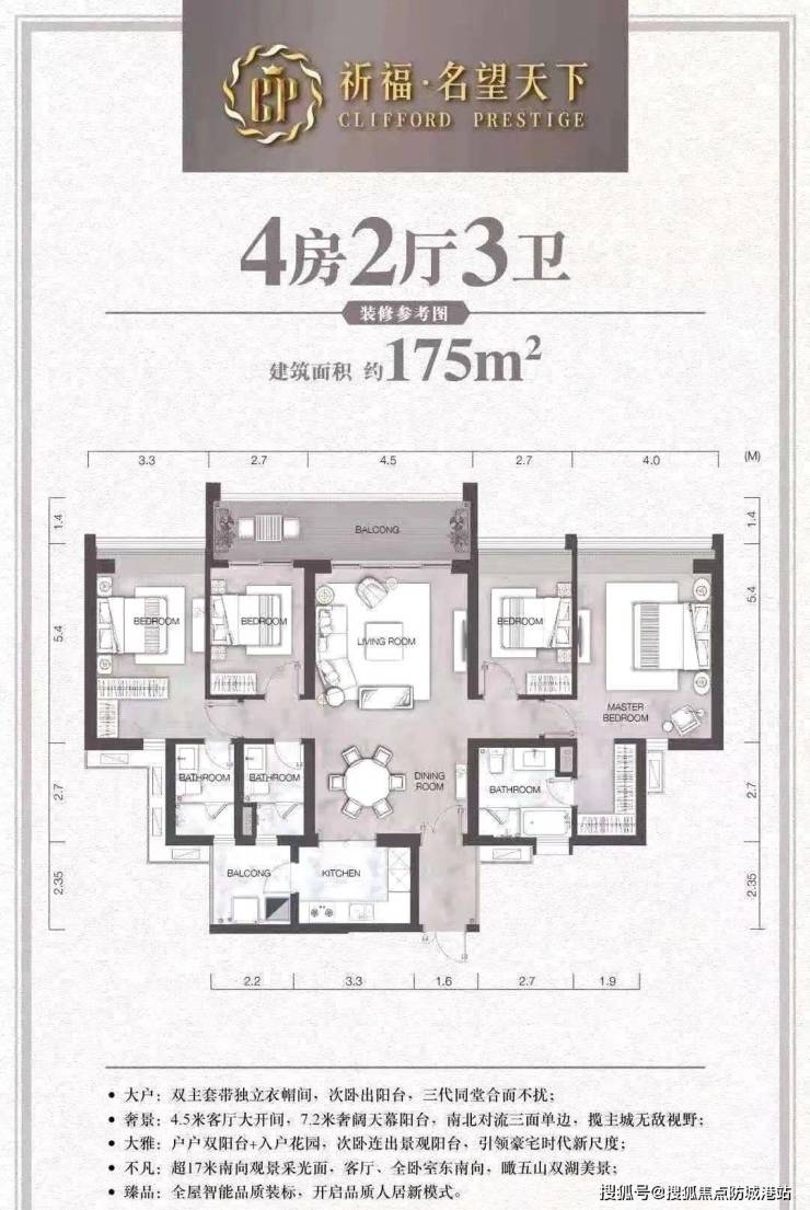 祈福名望天下产品涵盖78至175平方米多样户型,设计涵盖二房至五房,全面满足刚需及改善型购房者。所有户型均配备宽敞双阳台设计,增强采光通风效果,营造宽敞明亮的居住空间。楼栋设计采用4梯7户,保障私密性和居住舒适度。项目楼高179米,既保障良好视野,也彰显建筑地标价值。每户均可直达地铁22号线A出口,极大提升出行效率。户型规划注重功能分区合理,兼顾生活便利与舒适度,是兼顾实用性和豪华感的优质住宅典范。