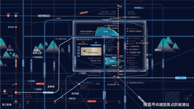 中新广州知识城:作为国家级双边合作项目,知识城不仅是跨国企业的聚集地,还拥有众多地标性建筑,如知识大厦、知识城广场、知识塔等。未来,以“城市化科学园”为特色的九龙湖总部经济带将成为知识城的核心CBD。