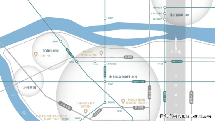 江湾潮起交通配套较为便捷,项目距离未来开通的10号线大干围站约650米,出行可快速接入天河、越秀、海珠及荔湾四大组团。附近还有2号线和广佛线南洲站,直线距离约1.5公里,可通过公共交通高效通达城市核心区。道路方面,项目门口环岛路部分路段已通车,未来闭环后可直达琶洲及周边重要商业节点。尽管临近工业区和城中村,交通便利性和核心位置使项目在通勤和城市连通性上具备较高价值,为业主提供便捷通勤和滨江生活兼顾的优势。