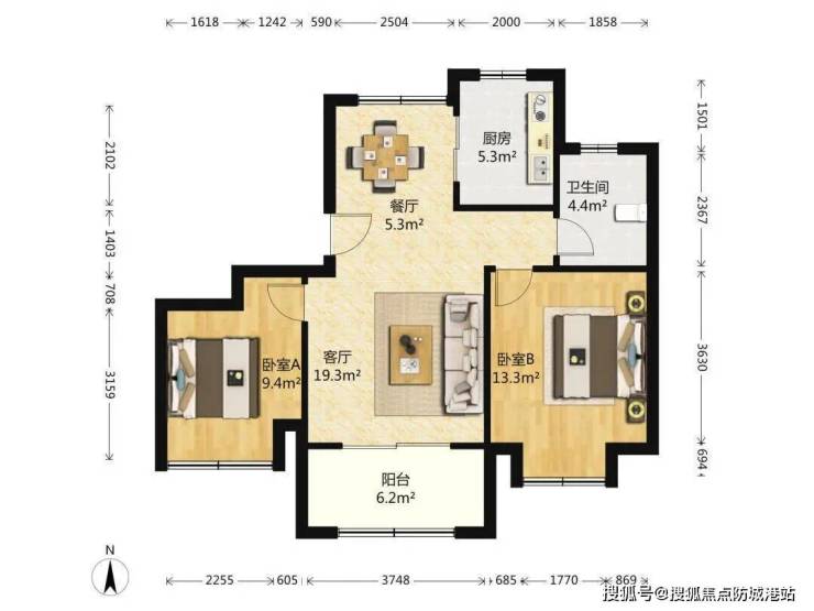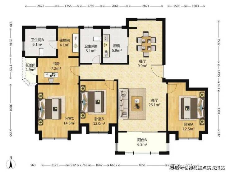 3.南北通透采光无死角,飞机户型动线分离;