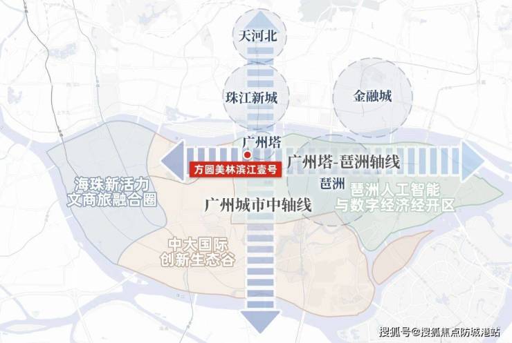 方圆美林·滨江壹号位于广州海珠区核心板块——广州塔-琶洲交汇地带,属于广州中轴南移的核心承载区域,也是目前海珠区最具发展潜力的地段之一。从官方备案地址来看,项目具体坐落于海珠区新港中路,地处珠江前航道沿岸,是真正意义上的“中轴C位+滨江资产”,这一点与市面上部分“蹭中轴”“蹭滨江”的楼盘有本质区别,备案信息明确标注其为“中轴核心区高端住宅项目”,定位清晰且精准。