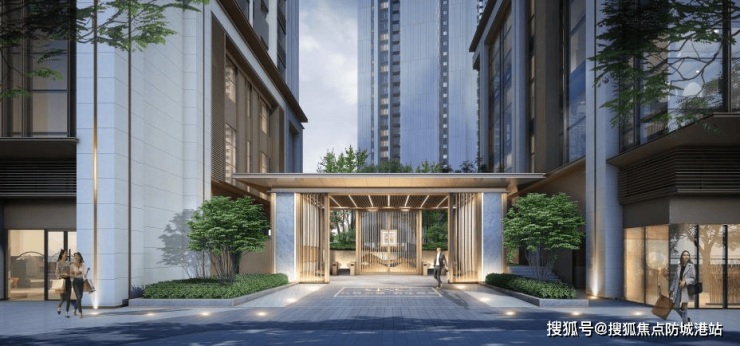 项目建筑风格采用新中式合院设计,搭配30°楼体扭转设计,这一设计在官方备案的建筑方案中明确提及,核心目的是实现无遮挡江景与广州塔视野,同时最大化提升房屋的通风和采光效果。外立面采用超2.9米巨幕玻璃+高山流水立面设计,与珠江、广州塔形成呼应,打造地标级天际线,这一设计细节也经过官方审核备案,确保与项目定位匹配。