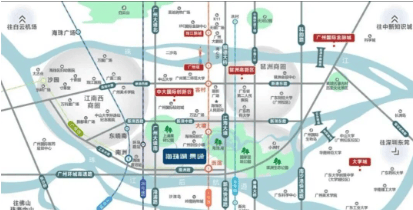 《海珠湖景峰》位于海珠区沥滘板块,南洲路北侧,距离地铁2号线、3号线及广佛线交汇的南洲站约1.6公里,4站即可到达珠江新城,交通极为便利。自驾出行方面,项目紧邻南洲路,向西600米可达广州大道,向东约1000米可接入环城高速,实现了快速联通全城乃至湾区其他城市的可能。