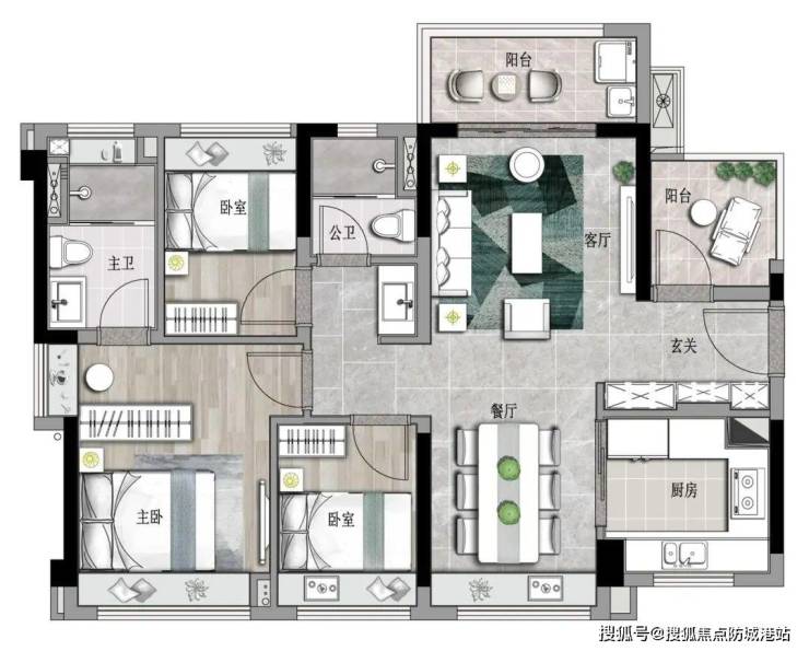 主卧套房:静音遮阳门窗,睡眠更酣畅,私密性强。
