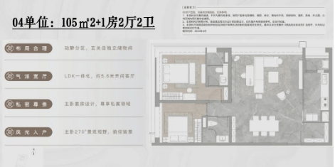 109平方米两房: 紧凑实用的设计,适合年轻夫妇或小家庭。主卧配有独立卫浴间,增加了私密性和便利性。