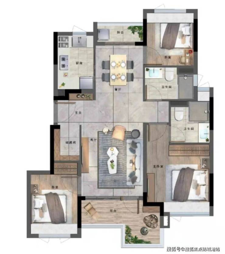 针对年轻人的喜好进行了设计:快递柜、厨房凉霸、碎骨机、洗碗机电位预留、卫生间暖浴一体机、扫地机器人电位预留等。