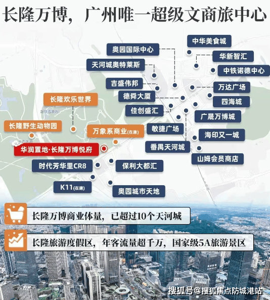 广州发展看番禺,番禺发展聚焦万博。长隆万博板块处于番禺 “黄金十字” 产业发展轴线的交汇点,战略地位显著。2022 年番禺新房成交价格同比上涨约 13%,GDP 达约 2705 亿元,工业产值增长约 8.2%,新登记各类经营主体增长约 10.32%,人口增长也位列全市第一。长隆 - 万博商圈历经 12 年发展,兑现程度高,汇聚 39 座甲级写字楼、10 大型商业体、超约 2.2 万家企业,2023 年官宣扩容近 5 倍,规模超越珠江新城,有望成为 “文商旅居产” 综合型商圈,发展潜力巨大。