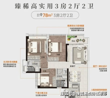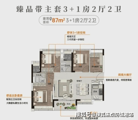 建面约85㎡带主套四房:在同等面积段中罕见的四房产品,适合追求多种生活方式的家庭。