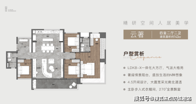 143平方米四房两厅两卫:大面积户型,适合大家庭居住,享受舒适的居家环境。