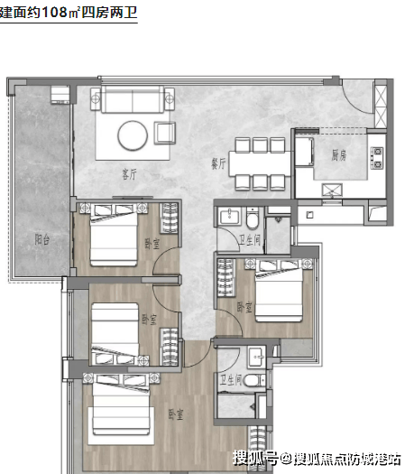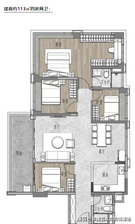 户型设计是项目的 “核心竞争力”,主打 69-80-85-108-113㎡三至四房,全部为新规户型,得房率超 100%,空间利用率远超旧规产品: