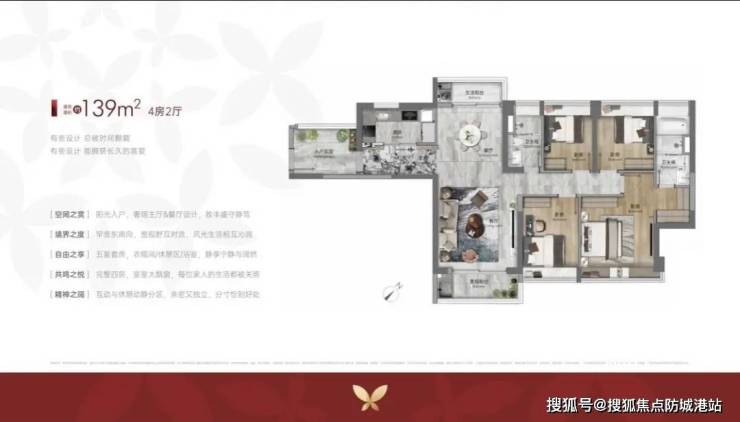 139㎡四房:独门独户设计,南北对流,江景视野无遮挡。