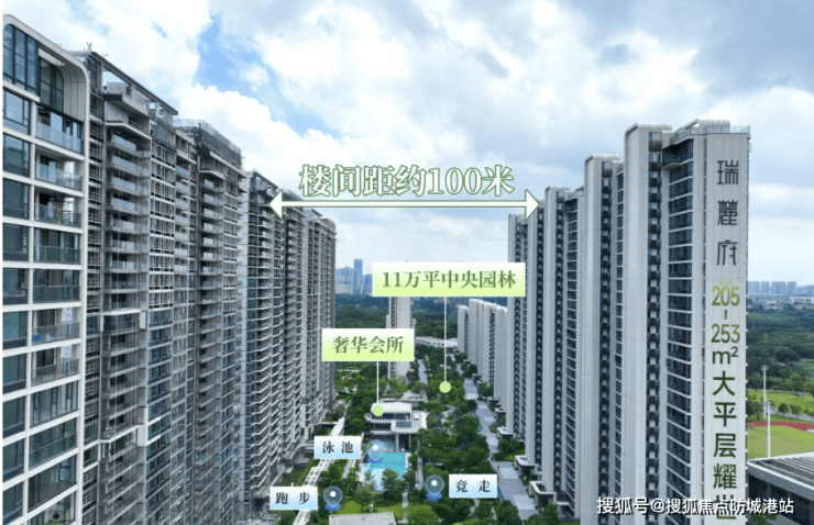 项目以 1.6 的超低容积率成为广州主城区新盘稀缺之作,经广州市住建局备案,该容积率达到墅级社区标准,远低于广州主城区新房平均容积率(3.2),项目规划 18 栋住宅,共 1500 户,全南向纯一字板楼设计,楼间距超 90 米,最大近百米,保证每一户的采光和通风。建筑外立面采用 100% 全蜂窝铝板 + 玻璃幕墙设计,铝板夹层加装保温棉,经第三方权威检测,该设计能使室内温差降低 5-8℃,实现冬暖夏凉,单平米铝板成本达 1200 元,远超行业平均水平,尽显国企产品匠心。社区内打造 600 米横向园林景观轴,配备约 50 米标准泳池、网球场、篮球场、羽毛球场等八大运动设施,以及由梁志天团队设计的 2000㎡高奢会所,涵盖私属宴会厅、室内运动室、家庭影像室等功能,满足业主高端生活需求。