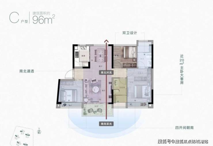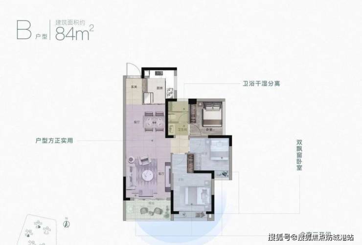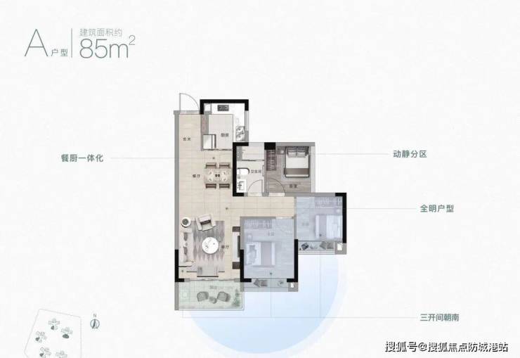 天健东玥台提供的所有户型均为2梯4户设计,保证每户都能享受到充足的阳光照射。项目内设有85㎡的3房2厅1卫、84㎡的3房2厅1卫、96㎡的3房2厅2卫以及110㎡的4房2厅2卫等不同面积段的户型,满足各种家庭结构的需求。房间内部采用精装修标准,配备知名品牌的卫浴设施和电梯,层高约为3米,为业主提供更加宽敞明亮的生活空间。A户型 85㎡3房2厅1卫